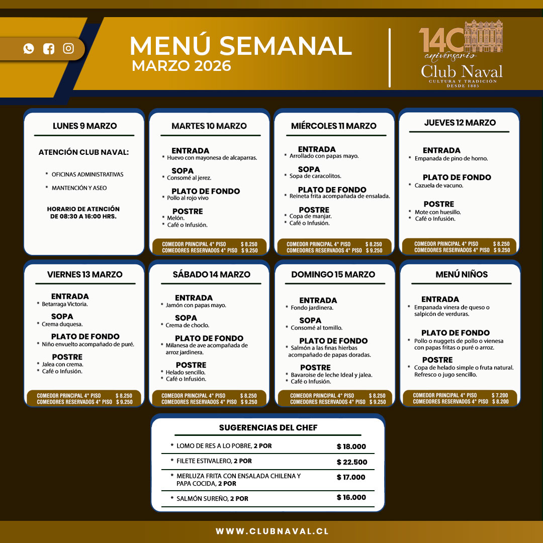 Con mucho agrado quiero invitarlos a recorrer las páginas de nuestro sitio para que se informen de nuestro patrimonio artístico, de nuestro quehacer y de los servicios que brindamos a nuestros socios. Esperamos que disfruten de su recorrido y sean Uds. muy bienvenidos a bordo del Club Naval.