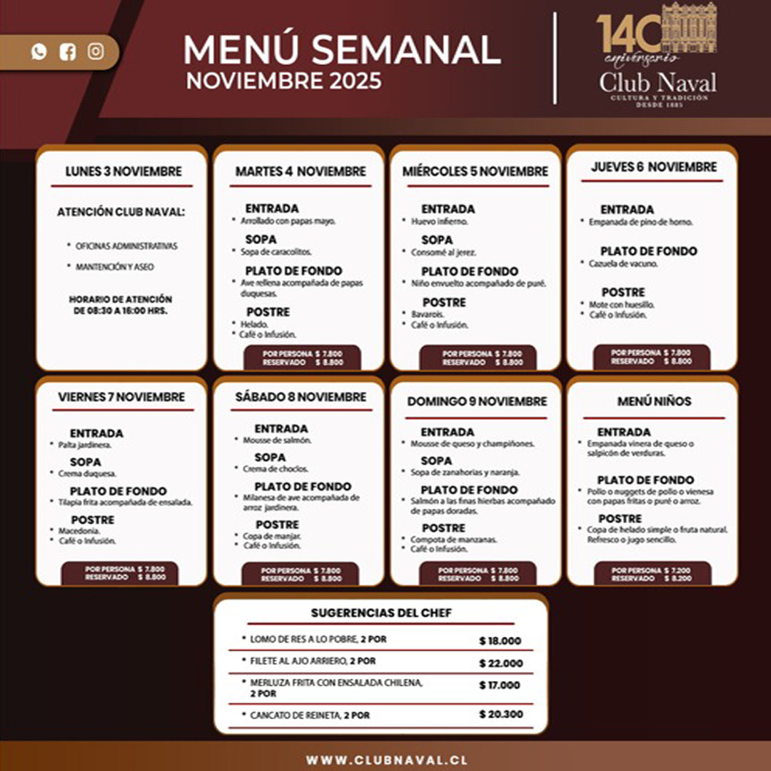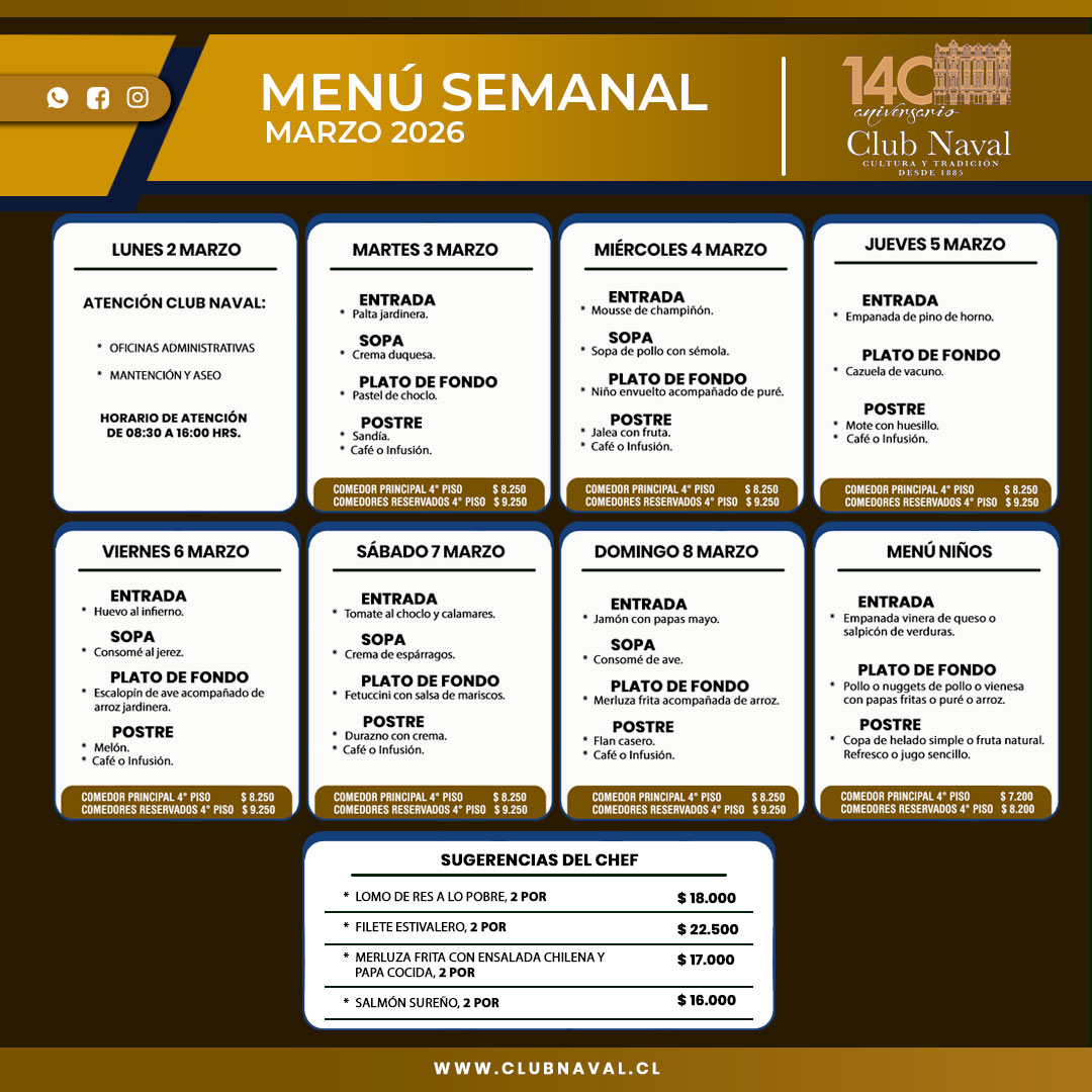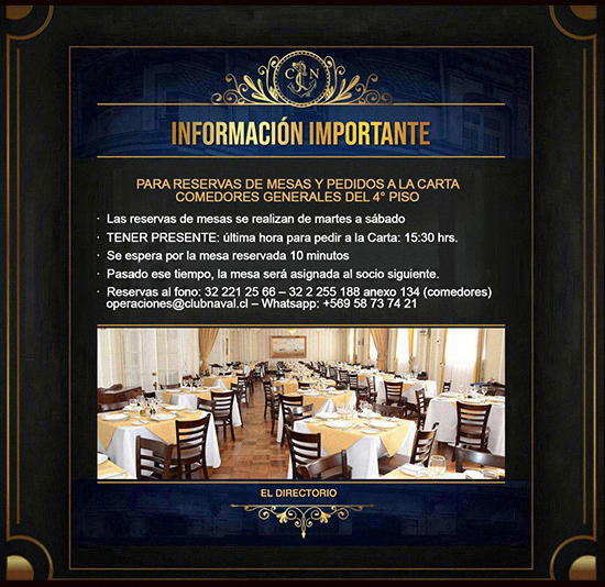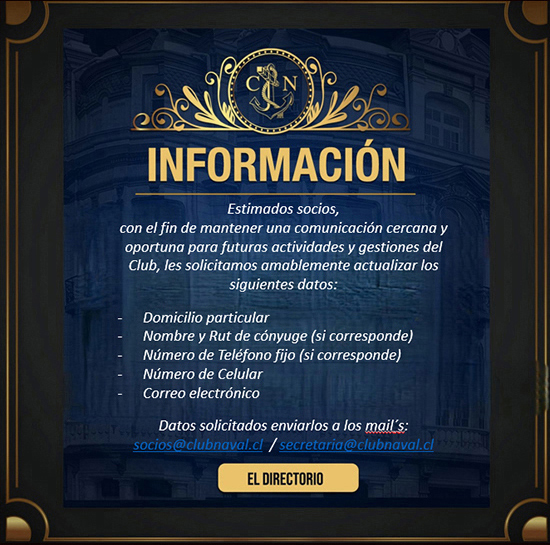 Con mucho agrado quiero invitarlos a recorrer las páginas de nuestro sitio para que se informen de nuestro patrimonio artístico, de nuestro quehacer y de los servicios que brindamos a nuestros socios. Esperamos que disfruten de su recorrido y sean Uds. muy bienvenidos a bordo del Club Naval.