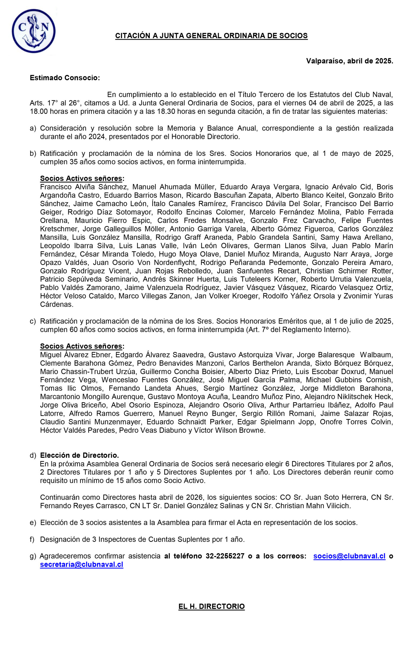 Bienvenidos a Club Naval de Valparaíso, desde 1885